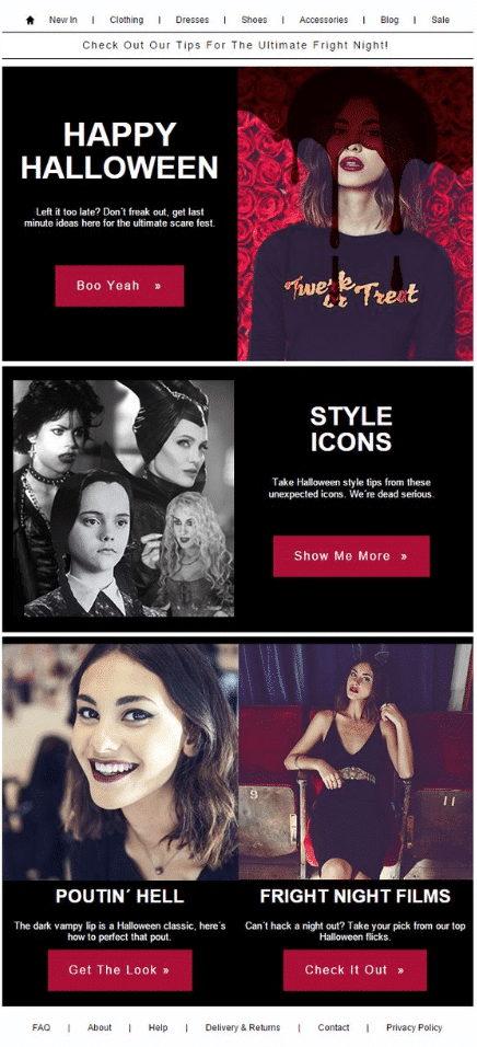 Adding small design details such as spiders or spider webs in the corners of your emails can be an effective and subtle touch. Try to find the right balance between staying true to your brand and incorporating creative Halloween email design elements.