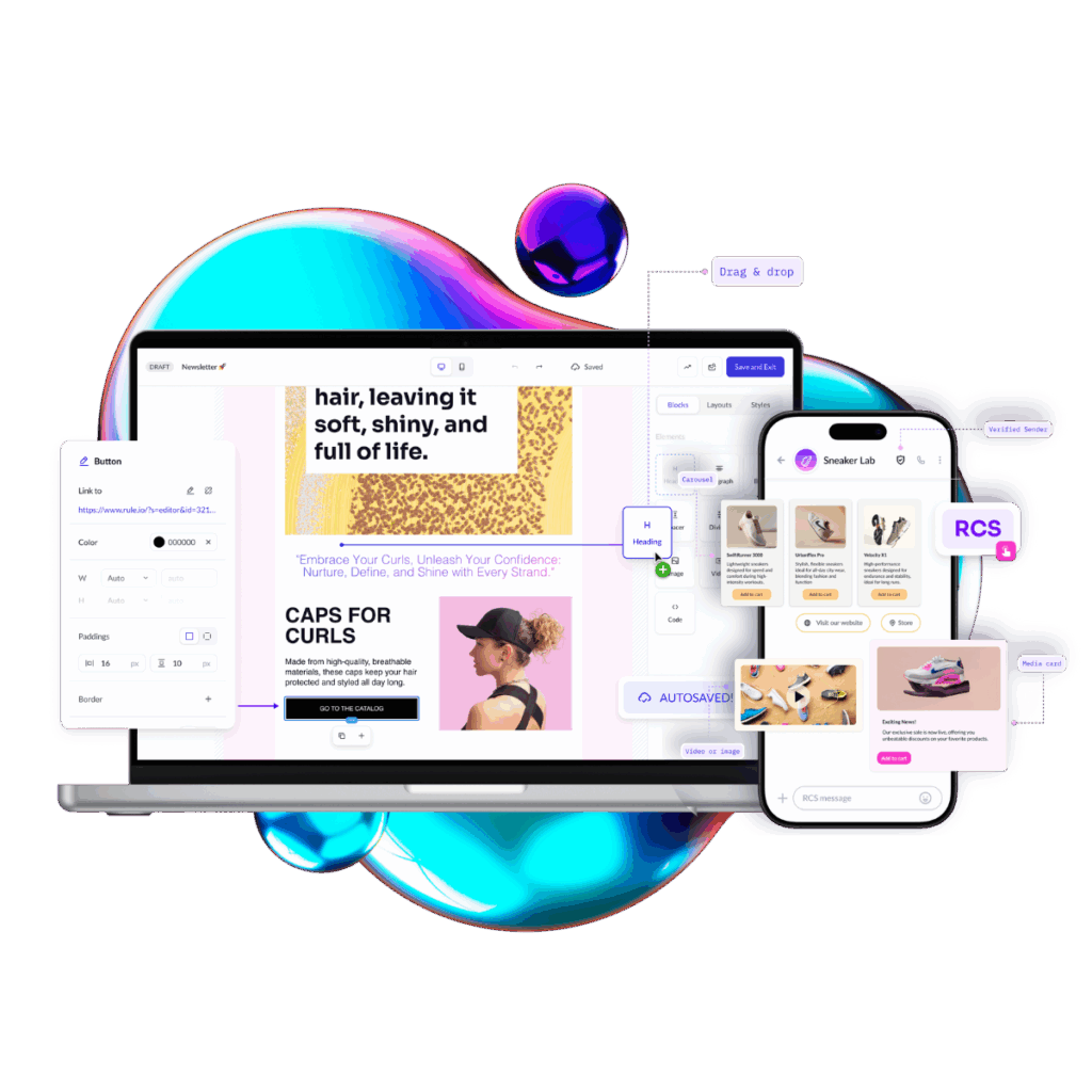 - Product feed, easily drag and drop content from your website